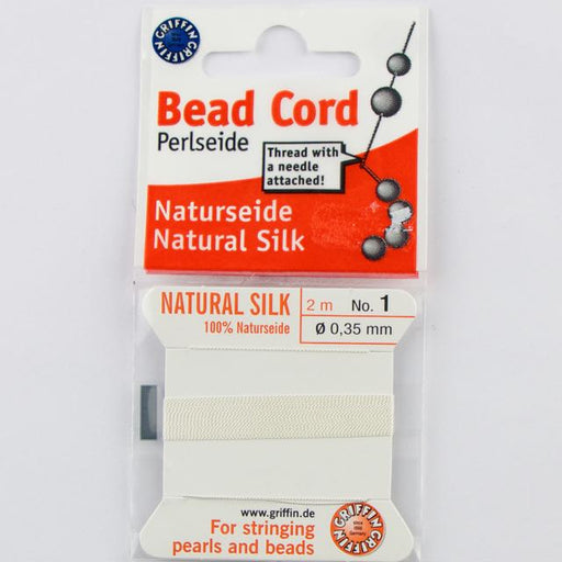 Size 1 (.35mm) - 100% Natural Silk Bead Cord - White