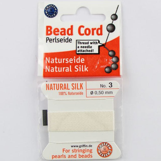 Size 3 (.50mm) - 100% Natural Silk Bead Cord - White