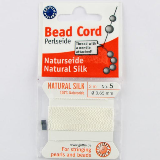 Size 5 (.65mm) - 100% Natural Silk Bead Cord - White