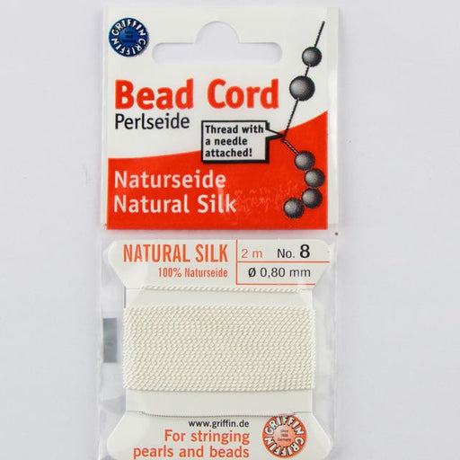 Size 8 (.80mm) - 100% Natural Silk Bead Cord - White