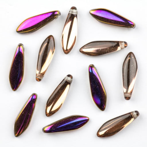 Package Size: 20 piecesDA-CVLMOut of stockDagger Beads are glass beads with a rounded spear shape and a side drilled hole through the top of the bead. Dimensions: 5mm x 16mm with a 0.8mm hole