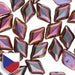 Gemduo beads are diamond shaped glass beads that have a flat back, a beveled front and two parallel holes through their side.