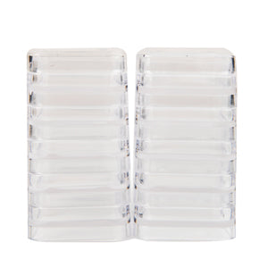 Square Clear Plastic Stacker Jars; 2 Stacks 1.25 in. x 2.3 in. with 2 Lids. Each jar is 1.25 in. sqare and 0.6 in. deep.