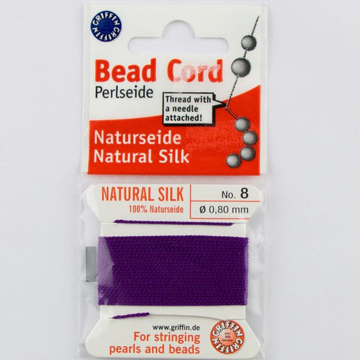 Size 8 (.80mm) - 100% Natural Silk Bead Cord - Amethyst