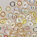O beads are flat, circular, glass beads that have a large hole in their centre, like a donut.